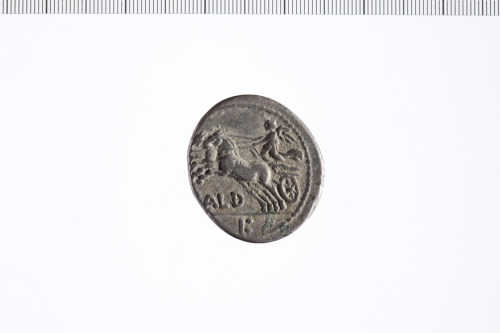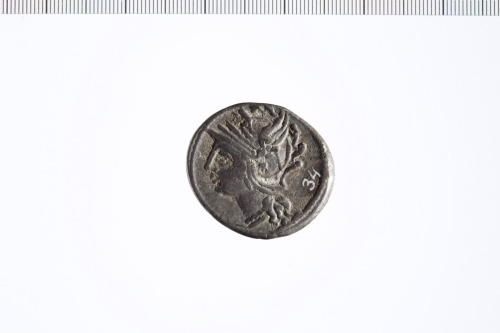 Dritto: Testa di Roma con elmo a s. Contorno perlinato.. Rovescio: Vittoria in biga a s. con redini in entrambe le mani. In esergo contromarca. Contorno perlinato.