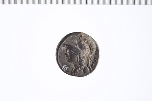 Dritto: Busto di Minerva a s. con elmo corinzio ed egida. Contorno perlinato.. Rovescio: Vittoria in biga a d. con palma nella mano s. e redini nella d. Contorno perlinato.