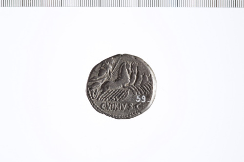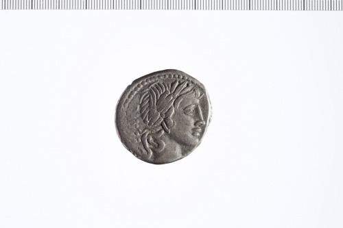Dritto: Testa laureata di Apollo a d. Contorno perlinato.. Rovescio: Minerva in quadriga a d. con lancia e redini nella mano s. e trofeo nella d. Contorno perlinato.