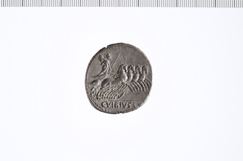 Dritto: Testa laureata di Apollo a d. Contorno perlinato.. Rovescio: Minerva in quadriga a d., incoronata dalla Vittoria, con lancia e redini nella mano s. e trofeo nella d. Contorno perlinato.