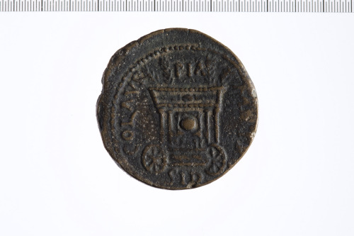 Dritto: Busto di Elagabalo a d. laureato e con paludamentum.. Rovescio: Carro con quattro figure all'interno che reggono crescente e sfera; quattro palme sul carro.