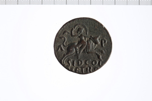Dritto: Busto di Elagabalo a d. laureato e con paludamentum e corazza.. Rovescio: Europa che cavalca un toro verso d. con la mano s. trattiene le corna e con la d. solleva il velo.