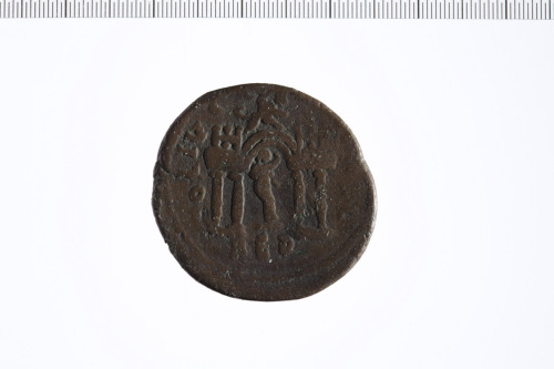 Dritto: Busto di Elagabalo a d. laureato e con paludamentum e corazza.. Rovescio: Porta con arco centrale sopra il quale è figura con braccio d. sollevato sopra leone o pantera, all'interno dell'arco, affiancato da due colonne per ciascun lato è statua di Sileno stante a d. con braccio d. sollevato e otre di vino sulla spalla s.