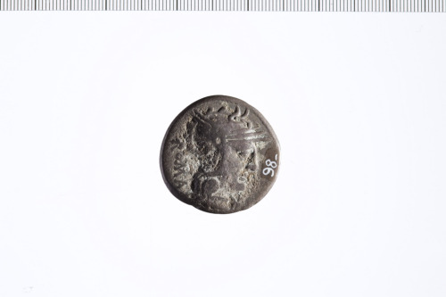 Dritto: Testa elmata di Roma a d. Contorno perlinato.. Rovescio: Scudo macedone decorato con testa di elefante in ghirlanda d'alloro.