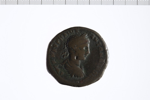 Dritto: Busto di Elagabalo a d. laureato e con paludamentum.. Rovescio: Tyche stante a s. con cornucopia e timone.