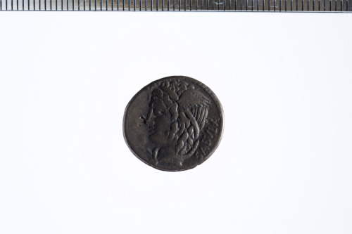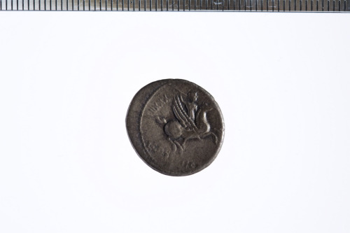 Dritto: Testa di Medusa a s.; c.p.. Rovescio: Guerriero con lancia regge le redini su una biga Bellerofonte su Pegaso a d. che brandisce con la mano d. una lancia; c.p.