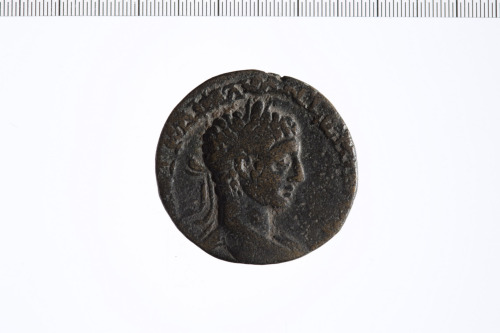 Dritto: Busto di Elagabalo a d. laureato e con paludamentum.. Rovescio: Tyche di Antiochia, velata e turrita, seduta a d. su roccia, trattiene spiga di grano,sotto divinità fluviale che nuota.