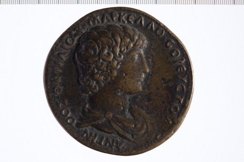 Dritto: Busto di Antinoo drappeggiato a d.. Rovescio: Tempio tetrastilo con frontone e la facciata coperta di rilievi; sotto: coccodrillo che cattura un uccello.