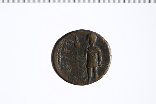 Dritto: Busto laureato di Antonino Pio a d., drappeggiato.. Rovescio: Figura maschile stante a s. trattiene nella mano d. uno stendardo nella s. un arco.