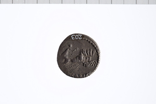 Dritto: Busto drappeggiato di Vittoria a d. Cerchio perlinato.. Rovescio: Vittoria in quadriga a d. tiene le redini nella mano d. e una ghirlanda nella mano s. Cerchio perlinato.