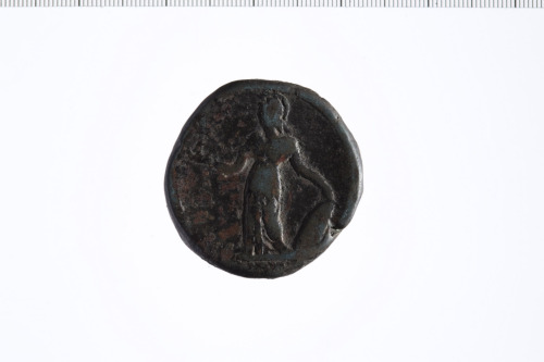 Dritto: Testa laureata di Adriano a d.. Rovescio: Athena in piedi a s., porta elmo, veste chitone ed egida, tiene Nike con corona e palma rivolta a d., riposa la s. sopra scudo posato a terra.