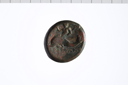 Dritto: Testa di Nettuno a d.. Rovescio: Nettuno su delfino a d. tiene una Vittoria nella mano d. e un tridente nella mano s.
