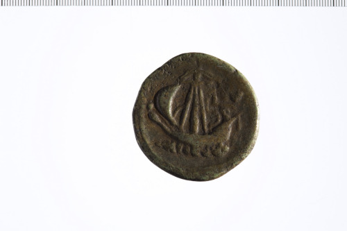 Dritto: Busto diademato e drappeggiato di Flavia Titiana a d.; contorno perlinato.. Rovescio: Imbarcazione a vela a s.