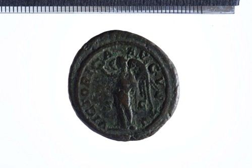 Dritto: Busto laureato di Alessandro Severo a d., con paludamentum, di tre quarti in avanti; contorno perlinato.. Rovescio: Vittoria stante a s., reggente corona nella s. e palma nella s.; contorno perlinato.