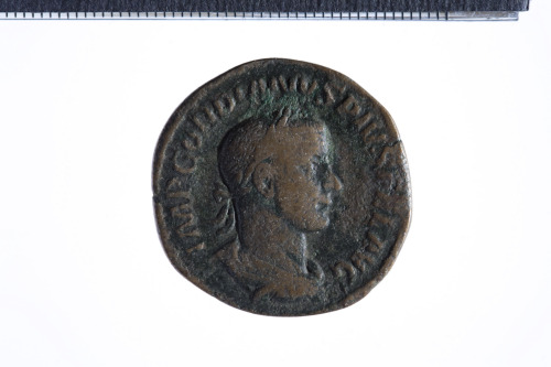 Dritto: Busto laureato di Gordiano III a d. con corazza e paludamentum, di tre quarti di spalle; contorno perlinato (?).. Rovescio: Securitas stante in posizione frontale, le gambe incrociate e la testa volta a s., reggente scettro nella d. protesa; braccio s. appoggiato a colonna; contorno perlinato (?).