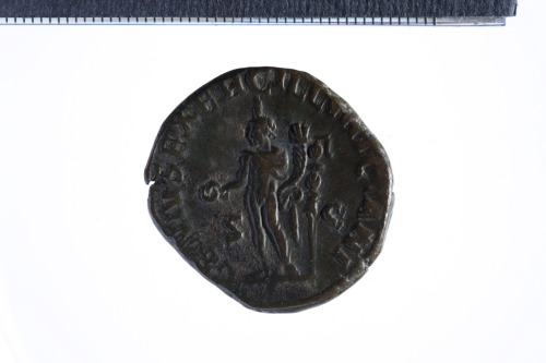 Dritto: Busto laureato e corazzato di Traiano Decio a d., di tre quarti in avanti; contorno perlinato.. Rovescio: Genius, indossante polos, stante a s., reggente cornucopia nella s. e patera nella d. protesa; alle sue spalle, stendardo; contorno perlinato.