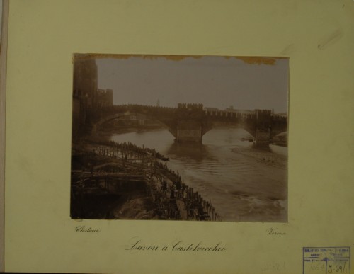 - NOTIZIE STORICO CRITICHE I lavori documentati in questa stampa fotografica sono parte del progetto di massima concernente l'assestamento dell'alveo urbano d'Adige di Verona, redatto dalla Commissione Governativa Municipale, diretta dall'ingegner Capo Municipale Emilio Cavalieri. Il progetto fu approvato dal Consiglio Comunale in data 11 settembre 1885, secondo le modifiche redatte al progetto dall'ingegner Capo Municipale Tullio Donatelli; fu riapprovato con delibera dal Consiglio Comunale in data 25 ottobre 1889 e dal Ministero dei Lavori Pubblici con un'ordinanza pervenuta al Comune di Verona il 3 aprile 1890. Il tratto d'alveo d'Adige documentato riguarda la sezione del progetto denominata "Tronco II". I lavori furono realizzati dall'impresa costruttrice Giacomo dott. Laschi tra il 4 febbraio 1890 e il 31 marzo 1894.