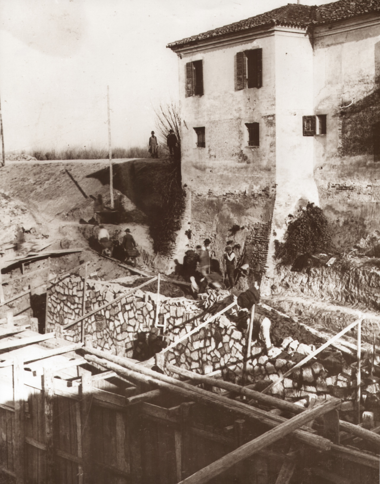 Costruzione della via alzaia vicino al Ponte delle Chiodare a Battaglia Terme.