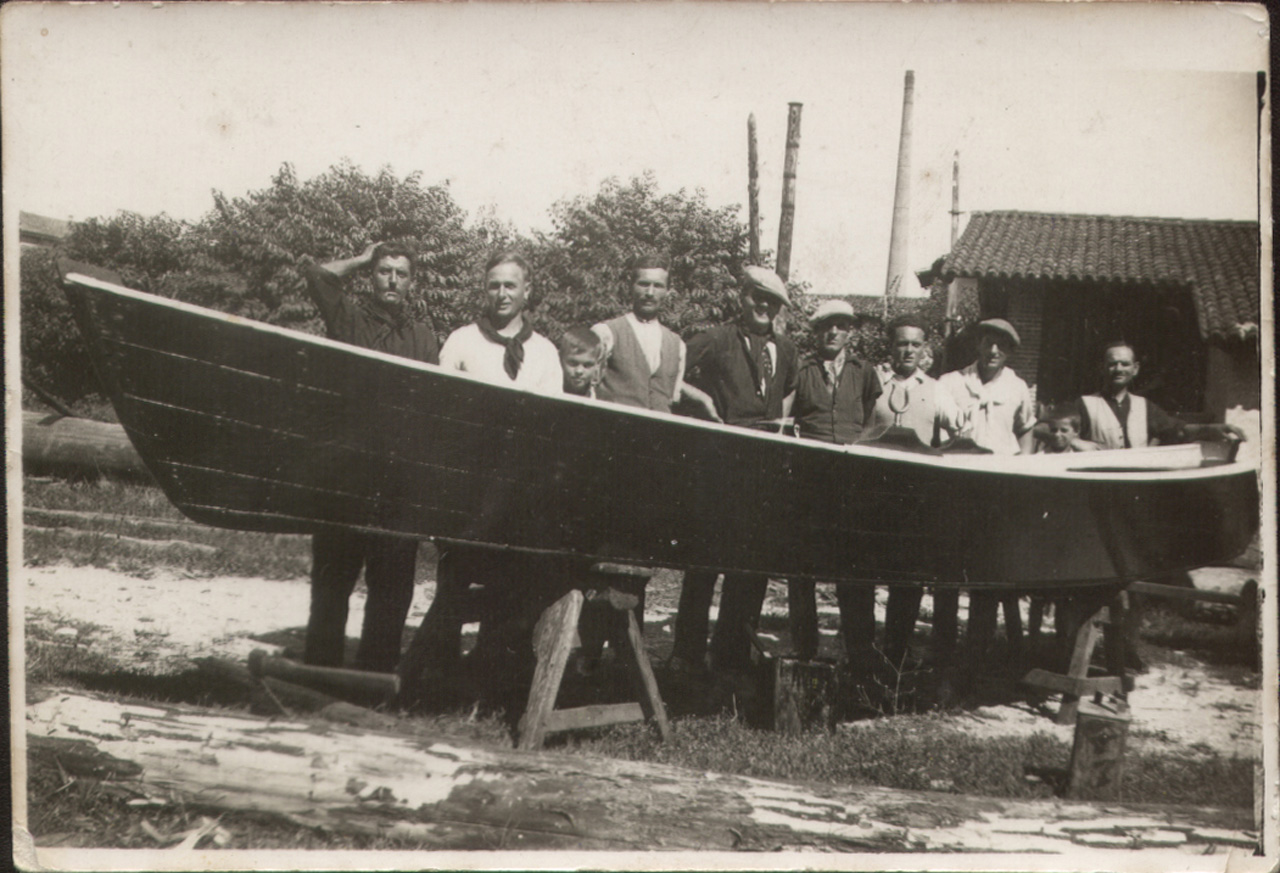Foto ricordo delle mastranze dello squero dei fratelli Cobelli a Pescantina.