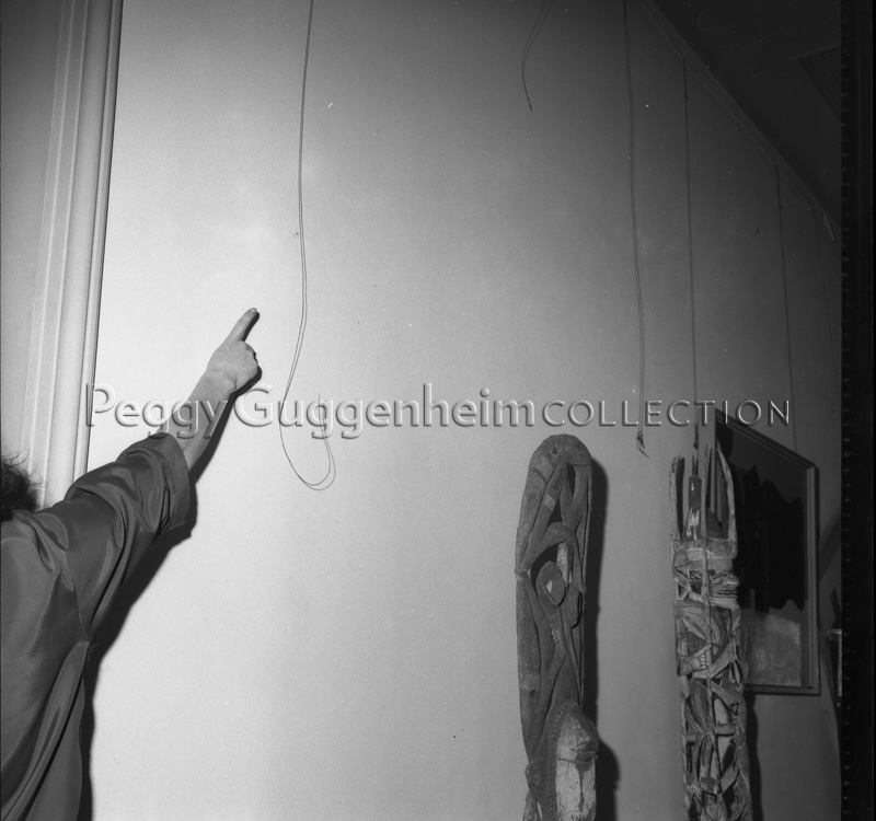 Peggy Guggenheim indica la posizione in cui erano esposti i dipinti che sono stati rubati