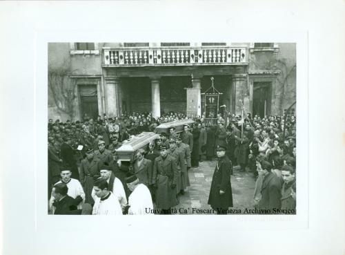 - NOTIZIE STORICO CRITICHE Fotografia individuata da Giannantonio Paladini nel 2001 e soggettata: "Funerali Antonio Marras 1943" (cartella n. 4). All'interno della cartella che contiene la fotografia compare anche una busta dell'Istituto Universitario di Economia e Commercio di Venezia (Venetiarum Schola - In Domo Foscari) sulla quale si legge la nota dattiloscritta: "Funerali Antonio Marras febbraio 1943.=".