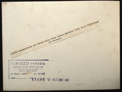 Lapide commemorativa dei Caduti della Prima Guerra Mondiale Prima della Costruzione del Sacrario