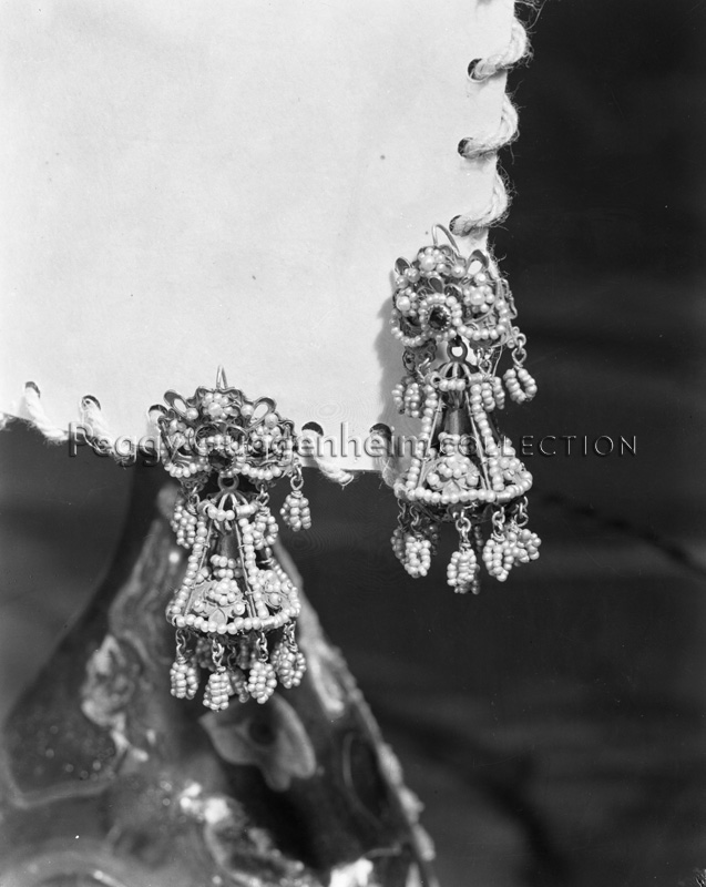 Peggy Guggenheims 18th-century Venetian drop earrings set with gems and pearls; 1949.