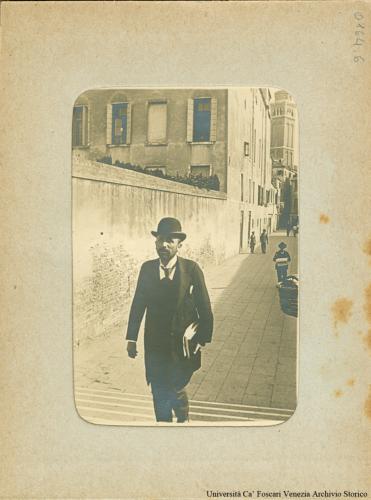 Ritratto di uomo con dei libri sottobraccio in Calle Larga Foscari