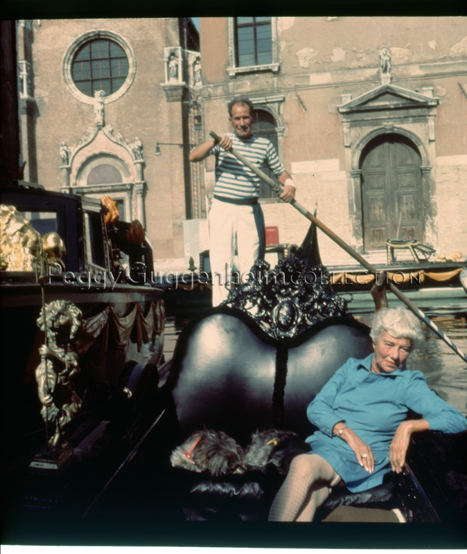 Peggy Guggenheim a bordo della sua gondola; Venezia, 1967 ca.