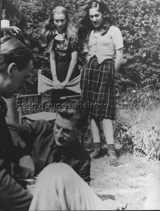 Pegeen Vail al centro assieme Samuel Beckett e Deborah Garman allo Yew Tree Cottage di Petersfield nei primi anni quaranta.