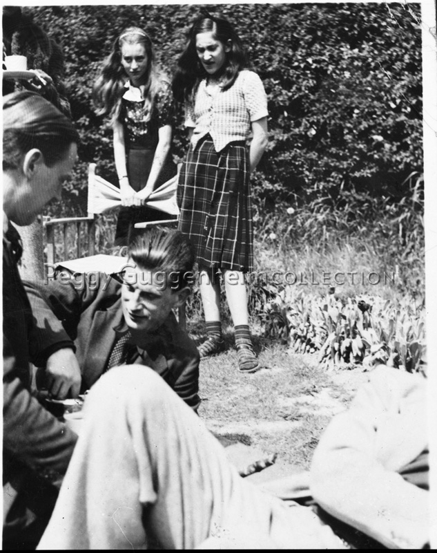 Pegeen Vail al centro assieme Samuel Beckett e Deborah Garman allo Yew Tree Cottage di Petersfield nei primi anni quaranta.