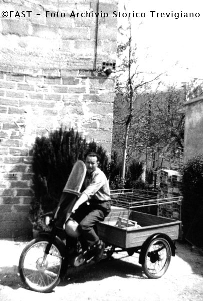 Il fruttivendolo Aristide De Longhi con il suo mezzo di lavoro