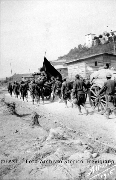 Soldati reduci dalla presa di Gorizia con trofeo di guerra