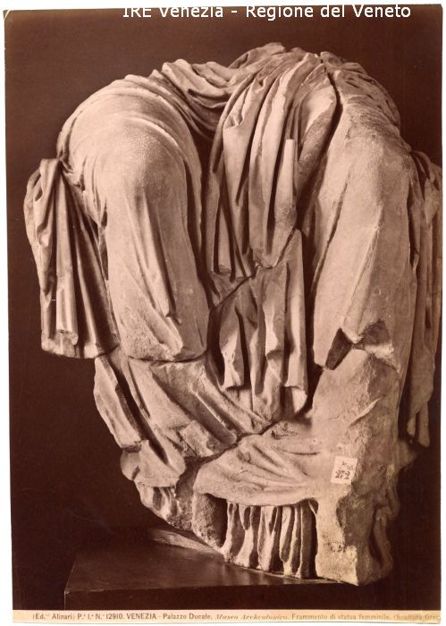 - ISCRIZIONI sul recto: in basso - (Ed.ne Alinari) P.e I.a N.° 12910. VENEZIA - Palazzo Ducale, Museo Archeologico. Frammento di statua femminile. (Scultura grec - fotografica -