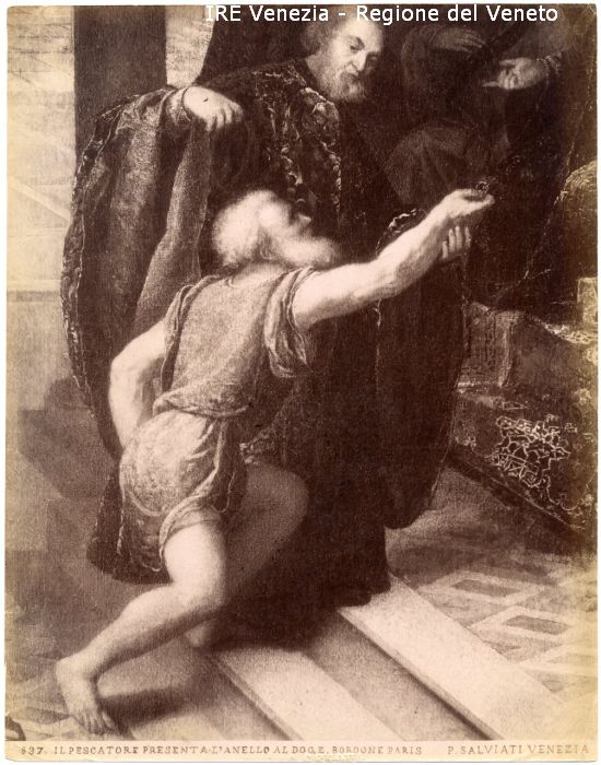 - ISCRIZIONI sul recto: in basso - 837. IL PESCATORE PRESENTA L'ANELLO AL DOGE. BORDONE PARIS/ P. SALVIATI VENEZIA - fotografica -