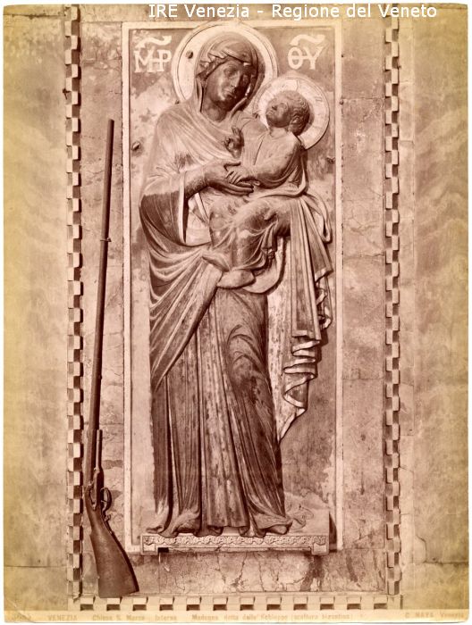 - ISCRIZIONI sul recto: in basso - 3685 VENEZIA/ Chiesa S. Marco - Interno/ Madonna detta dello Schioppo (scoltura bizantina) C. NAYA Venezia - a matita -