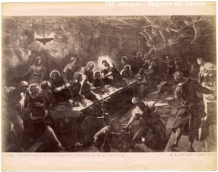 - ISCRIZIONI sul recto: in basso - 495. CENACOLO. TINTORETTO. CHIESA M. S. GIORGIO M./ P. SALVIATI VENEZIA - fotografica -