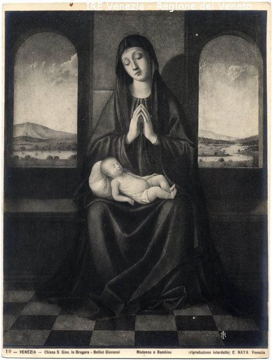 - ISCRIZIONI sul recto: in basso - 19 - VENEZIA - Chiesa S. Giov. in Bragora - Bellini Giovanni/ Madonna e Bambino/ (riproduzione interdetta) C. NAYA Venezia - fotografica -