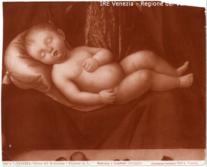 - ISCRIZIONI sul recto: in basso - 902 A - VENEZIA. Chiesa del Redentore - Vivarini A. L./ Madonna e bambino" (dettaglio)/ (riproduzione interdetta) NAYA Venezia - fotografica -