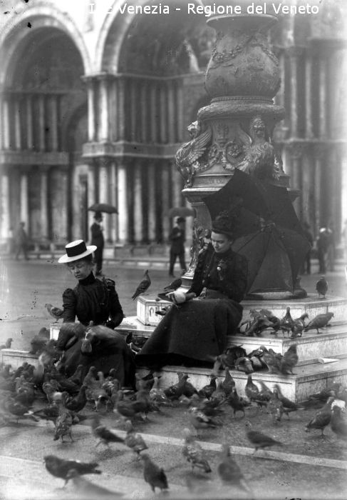 Venezia, piazza San Marco, turiste con piccioni di Filippi, Tomaso (XIX)