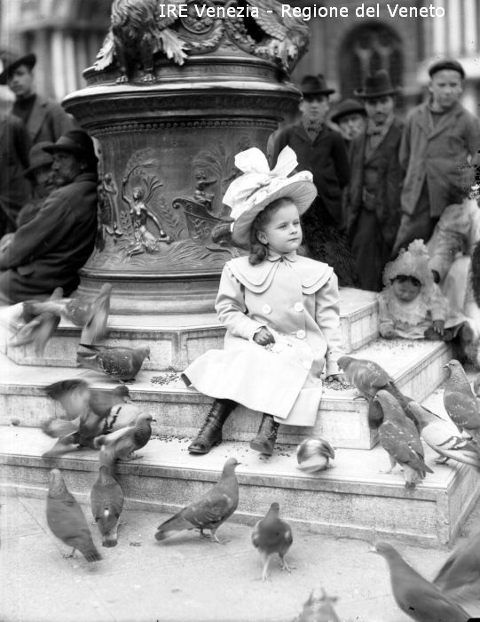 Venezia, piazza San Marco, bambina con piccioni di Filippi, Tomaso (XIX)