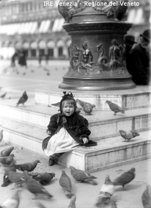 Venezia, piazza San Marco, bambina con piccioni di Filippi, Tomaso (XIX)