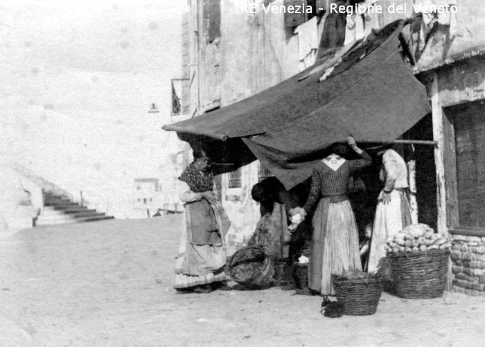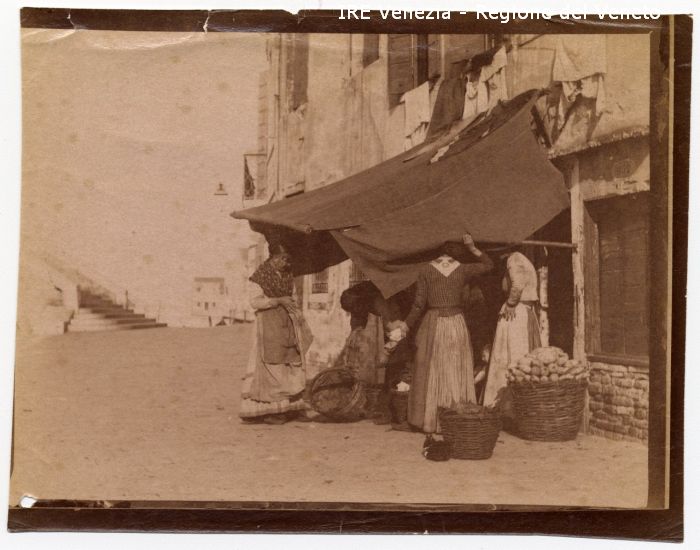 Venezia - Vita veneziana e lagunare - Scene e costumi - Mercato, negozi, bancarelle - Fondamenta di Cannaregio - Ponte dei Tre Archi - Bottega di fruttivendolo - Acquirenti
