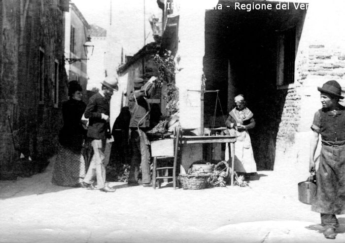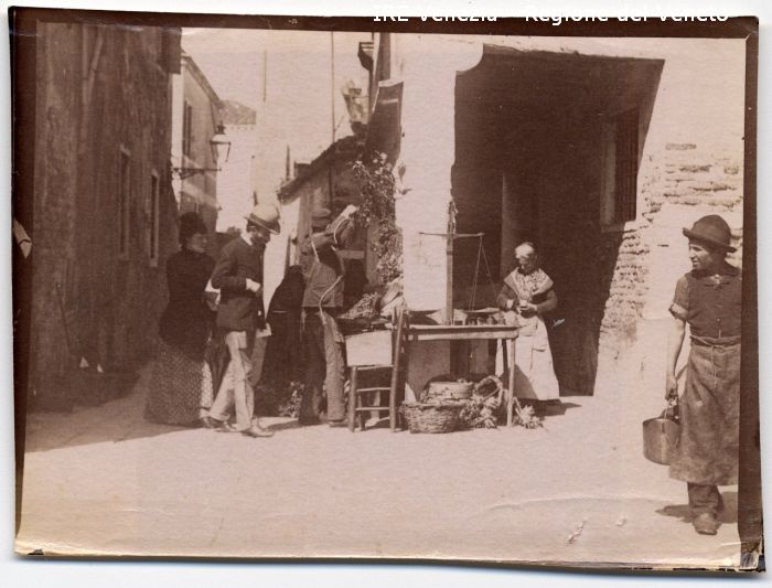 Venezia - Vita veneziana e lagunare - Scene e costumi - Mercato, negozi, bancarelle - Calle non localizzata - Bancarella