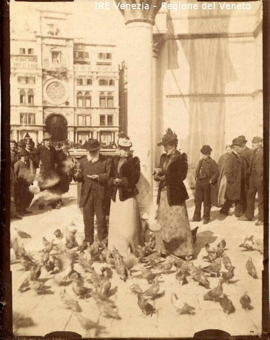 Venezia - Vita veneziana e lagunare - Scene e costumi - Turismo - Piazza S. Marco - Basilica: verso la Torre dell'Orologio - Turisti con piccioni - Persone