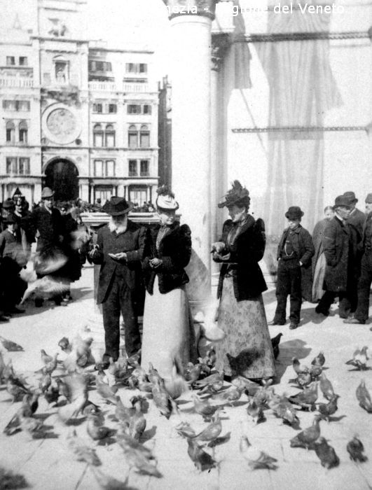 Turisti con piccioni in Piazza S. Marco