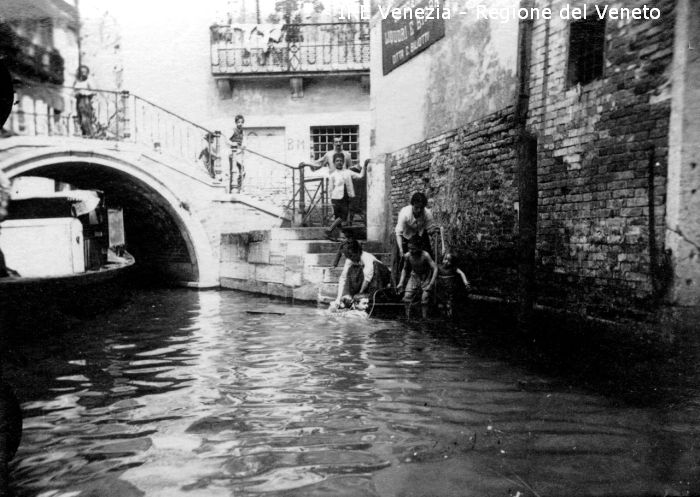 Venezia - Vita veneziana e lagunare - Scene e costumi - Momenti di vita quotidiana - Rio di S. Giacomo dell'Orio - Ponte del Megio - Bambini che fanno il bagno