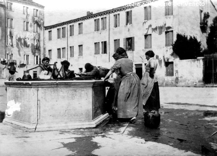 Venezia - Vita veneziana e lagunare - Scene e costumi - Momenti di vita quotidiana - Campo non identificato - Vera da pozzo - Gruppo di donne