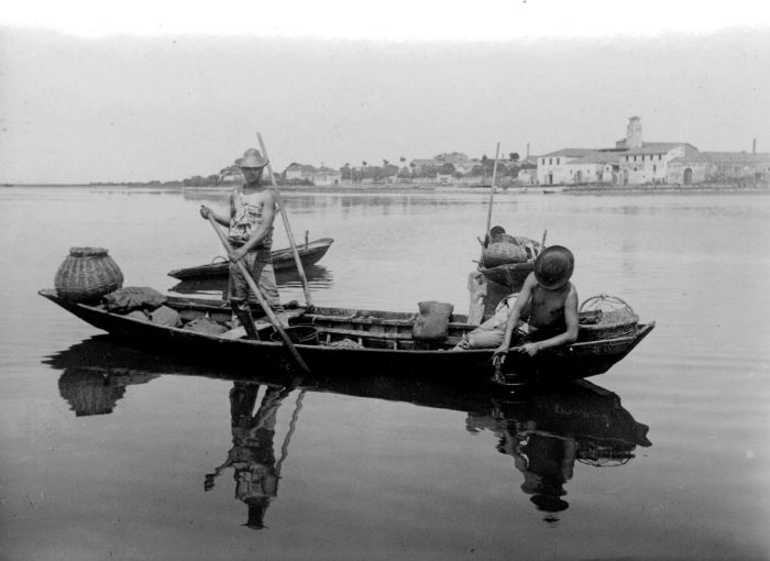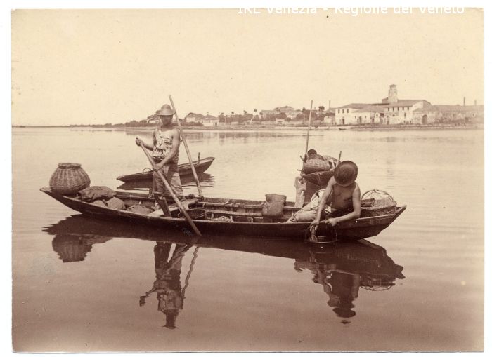 Venezia - Vita veneziana e lagunare - Scene e costumi - Pesca in Laguna - Laguna di Venezia - Imbarcazione: sc'iopon o caicio - Vieri - Pescatori
