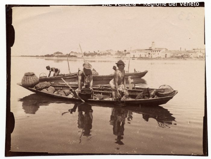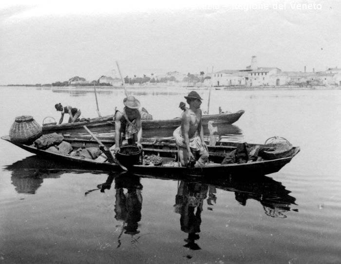 Venezia - Vita veneziana e lagunare - Scene e costumi - Pesca in Laguna - Laguna di Venezia - Imbarcazione: sc'iopon o caicio - Vieri - Pescatori